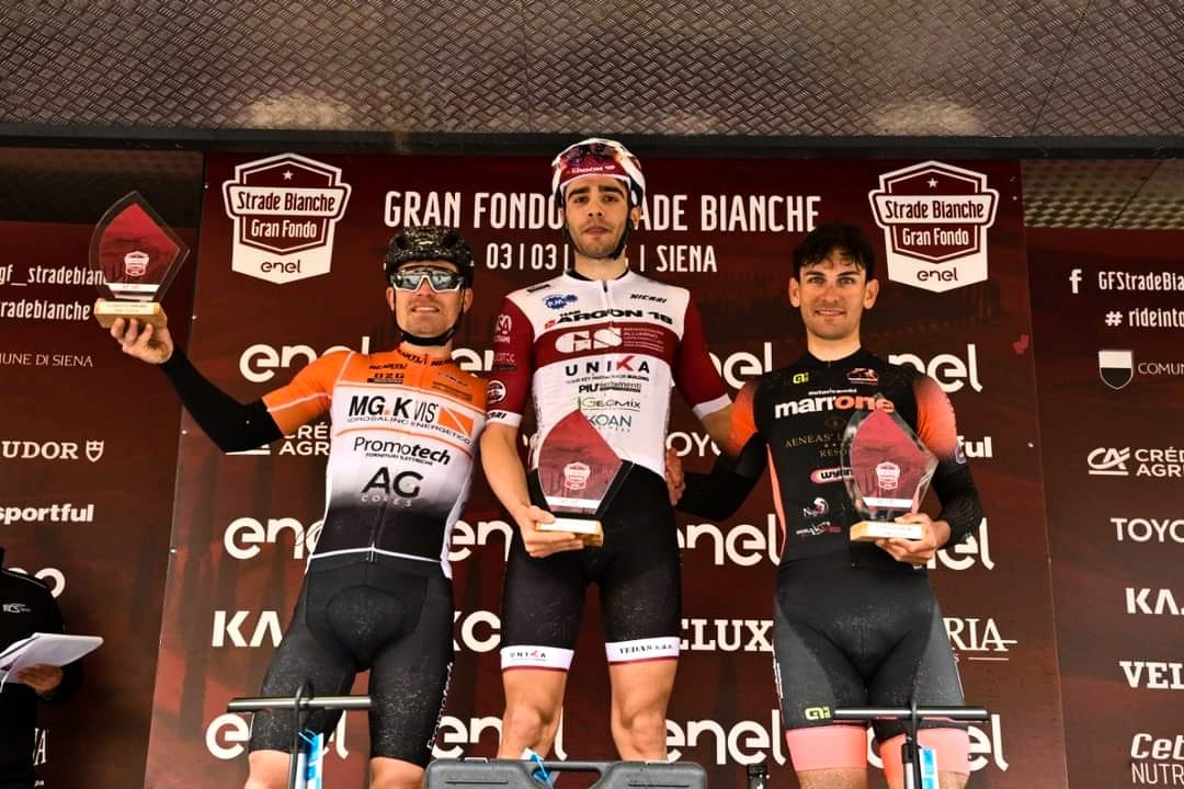 Terzo assoluto nella Granfondo Strade Bianche 2024.